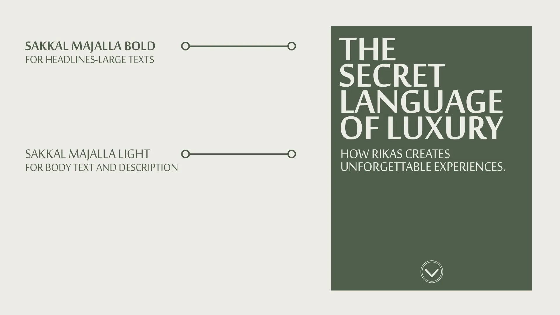 Typography at RIKAS is chosen to express understated elegance. My primary typeface features clean lines and balanced spacing, designed for readability and a modern premium feel.