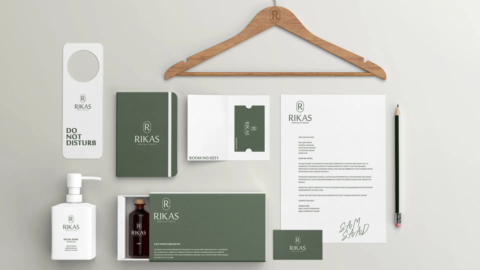 Beyond digital and amenities, RIKAS’s brand lives in every touchpoint: elegant signage, timeless stationery, and thoughtfully designed in-room details.